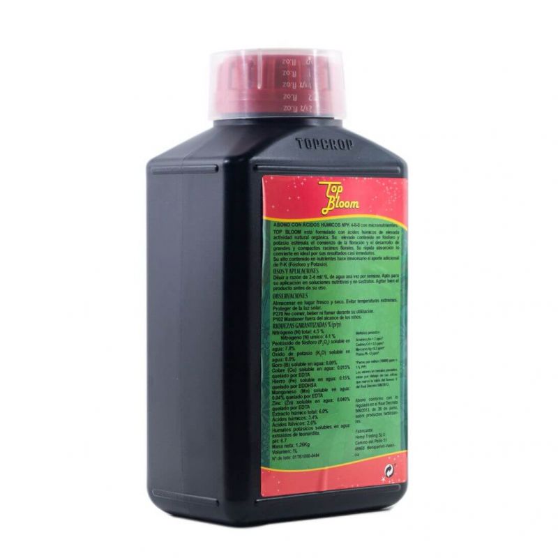 Top Bloom (1 litro) de Top Crop es el fertilizante esencial para aquellos cultivadores que aspiran a cosechas de alta calidad, con cogollos densos y aromáticos. Su fórmula rica en fósforo y potasio asegura el desarrollo óptimo de las flores, mientras que la posibilidad de combinarlo con otros productos de la línea Top Crop ofrece una estrategia completa para maximizar la producción y la calidad de tus plantas. Empezando con dosis moderadas y ajustando según la respuesta de la planta, Top Bloom garantiza un desarrollo floral sin precedentes, convirtiéndose en un componente clave en la nutrición de tus plantas autoflorecientes.