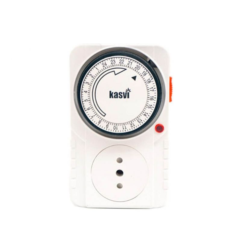 El Timer Análogo Kasvi es ideal para aquellos que buscan una solución sencilla y efectiva para automatizar sus procesos de cultivo. Solo necesitas ajustar el horario según las manecillas del reloj y la duración deseada para cada ciclo. Su diseño plug-in facilita su uso, ya que se conecta directamente a la corriente, permitiendo una instalación rápida y sin complicaciones.