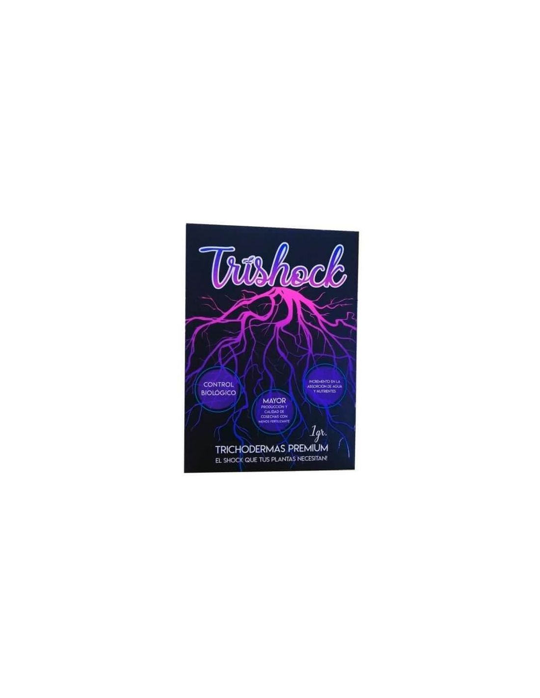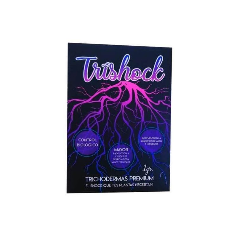 Trishock de Micoroots son tricodermas (Hongos beneficiosos) de la cepa Trichoderma Atroviride para estimular el crecimiento radicular. Le otorgan protección a la planta frente a hongos dañinos.