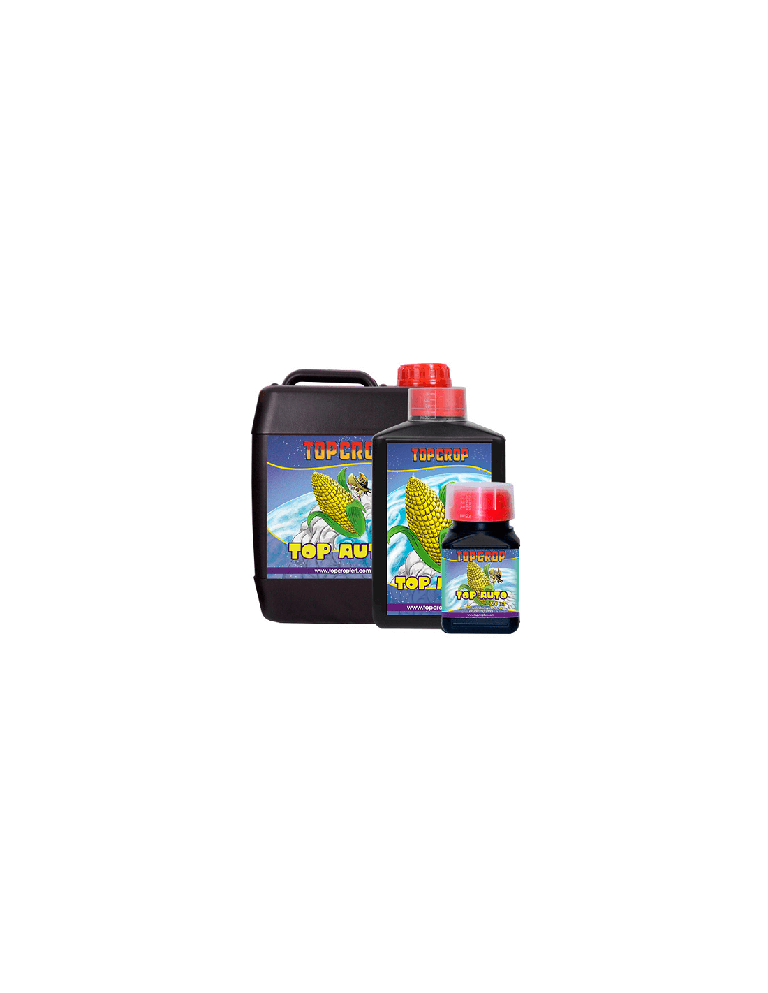 TOP AUTO de TOP CROP en un fertilizante mineral NPK (Nitrógeno, Potasio y Fósforo) de alta concentración, con micronutrientes quelatos, ácidos húmicos y fúlvicos de liberación rápida. Su fórmula equilibrada de alta solubilidad le entregaran a tus plantas lo necesario para un crecimiento explosivo y con grandes flores. De rápida asimilación acondiciona el sustrato aportando la alimentación básica de la planta y estimulando el crecimiento en la fase vegetativa e incrementando la densidad y el tamaño de las flores. Para mayores resultados te recomendamos combinarlo con otros fertilizantes de floración Top Crop como Top Bud, Top Candy y Big One.