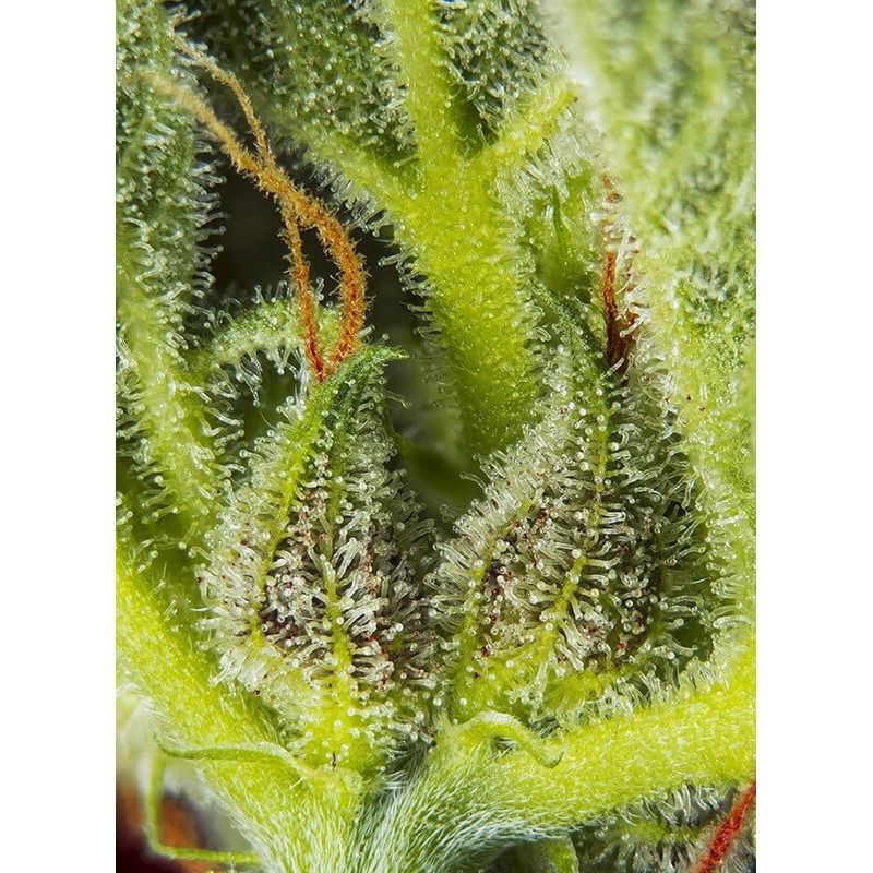 El resultado es una planta con una estructura impresionante que alcanza alturas de 110-150 cm, capaz de producir entre 450-650 g/m² en interiores y 50-300 g/planta en exteriores. Sus flores son un espectáculo visual y olfativo, ofreciendo un sabor que balancea lo agrio con lo dulce, destacando la esencia cítrica de la mandarina. Con niveles de THC que varían entre el 18% y el 23%, y un contenido de CBD de 0,6%, esta variedad promete efectos multifacéticos que incluyen relajación, bienestar, estímulos a la creatividad, una experiencia psicoactiva y un aumento del apetito.