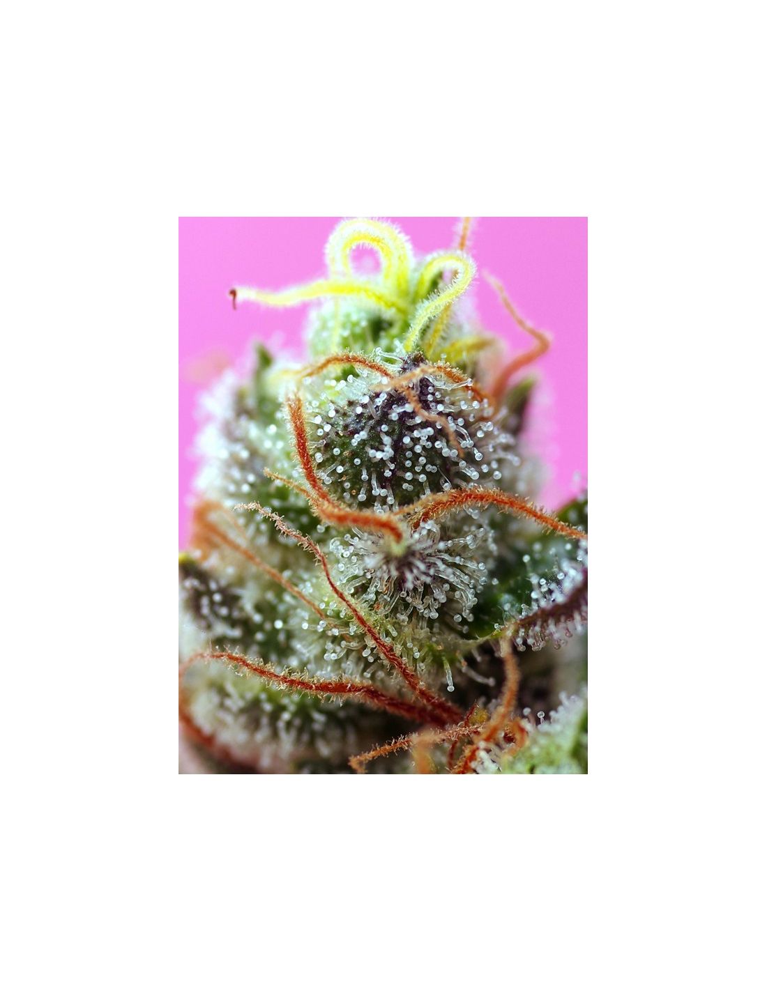 Esta variedad se caracteriza por su alta producción de cogollos densos y cubiertos de resina, ideal para los cultivadores que buscan maximizar su rendimiento. Su efecto es energizante y estimulante, perfecto para desatar la creatividad y sumergirse en un estado de felicidad y bienestar.