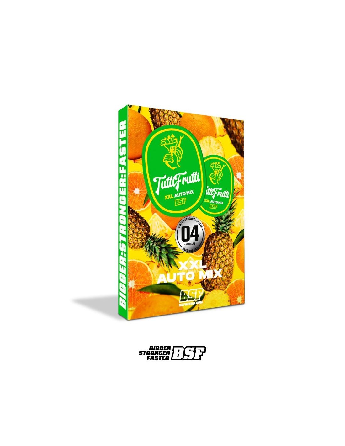 El Tutti Frutti XXL Mix Auto (X4) de BSF Seeds es una selección primorosa de genéticas autoflorecientes, diseñada para deleitar los sentidos con una paleta de sabores frutales y dulces. Este mix incluye Auto Blueberry, Auto Rainbows, Auto Orange Blossom y Auto Pineapple Larry OG, cada una embalada individualmente para garantizar un cultivo organizado y diferenciado.