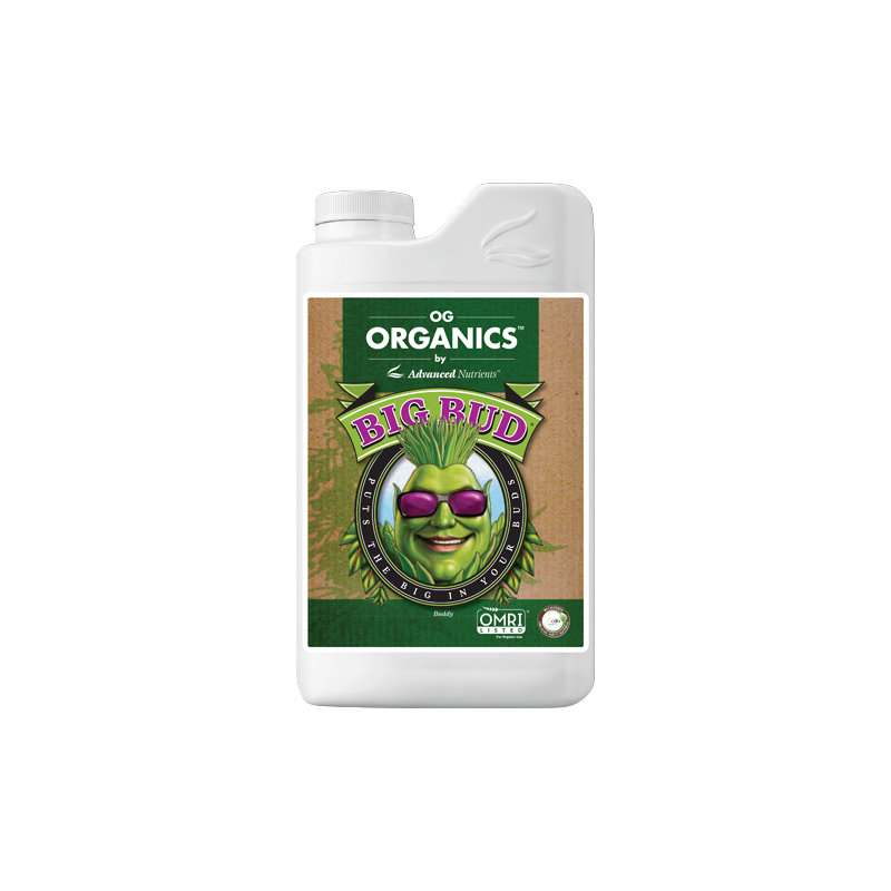 OG Organics™ Big Bud® 1L de Advanced Nutrients es un fertilizante orgánico certificado que potencia la floración y el engorde de las flores en cultivos de cannabis. Con una proporción 1:2 de fósforo y potasio, junto con ingredientes naturales como hidrolizado de proteína de pescado, este aditivo proporciona los micronutrientes necesarios para una floración vigorosa y saludable. Compatible con sistemas hidropónicos y nutrientes pH Perfect.