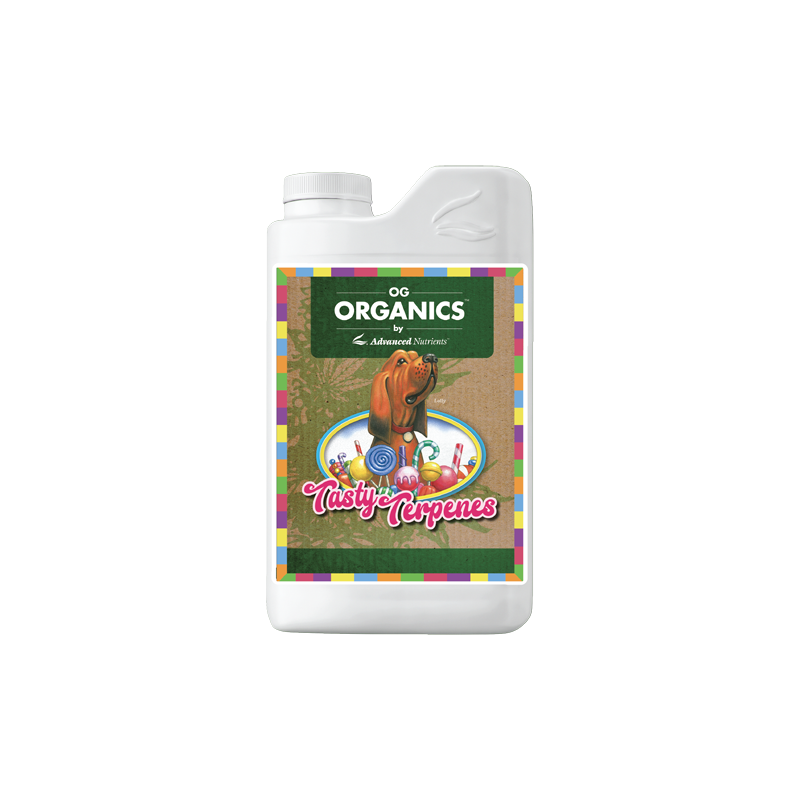 OG Organics™ Tasty Terpenes® 500ml de Advanced Nutrients es un fertilizante orgánico certificado que estimula el desarrollo natural de flores grandes y potentes en cultivos de cannabis. Con una fórmula rica en potasio, azufre, alga Kelp y harina de alfalfa, este aditivo orgánico maximiza la absorción de nutrientes y protege las plantas del estrés abiótico. Ideal para sistemas hidropónicos y compatible con nutrientes pH Perfect.