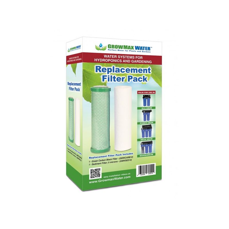 Pack de filtros 10" original para sistemas Grow Max Water. Compatible con Eco Grow, Power Grow, Mega Grow y Maxquarium, incluye filtro de sedimentos de 5 micras y filtro de carbón de alta capacidad. Ideal para mantener agua purificada y proteger tu sistema de cultivo.