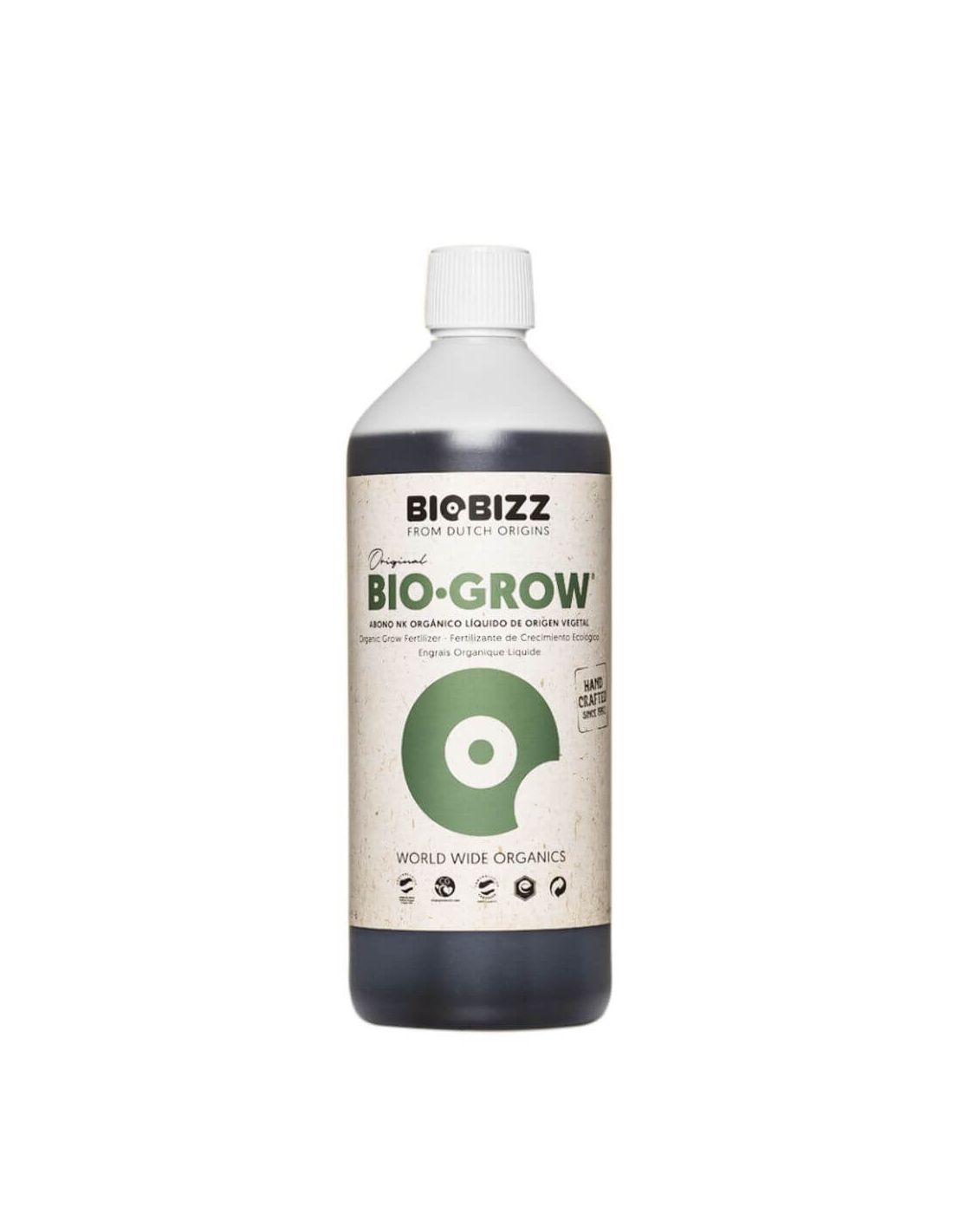 Bio·Grow de 500 ml de BioBizz es un fertilizante de crecimiento líquido versátil y eficaz, adecuado para la mayoría de los tipos de tierra y mezclas de sustrato. Su ingrediente principal es el extracto de remolacha azucarera holandesa 100% orgánica, también conocida como vinaza, un subproducto de la transformación del azúcar de la remolacha o caña de azúcar. Este componente se obtiene mediante un proceso de fermentación natural, seguido por la transformación enzimática de almidones en glucosa.