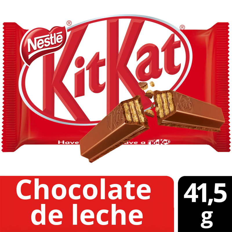 -Disfruta del equilibrio perfecto entre crujiente y cremoso con Kit Kat 41,5gr, una versión más gruesa y satisfactoria del clásico Kit Kat. Esta barra individual está compuesta por una capa gruesa de crujiente galleta oblea recubierta con un delicioso chocolate con leche, brindando una experiencia indulgente en cada bocado.