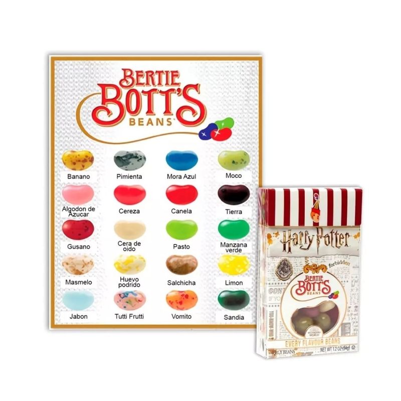 -Sumérgete en el mundo mágico de Harry Potter con las icónicas Grageas Bertie Bott's 35 gr, una colección de caramelos que desafían el paladar con una mezcla única de sabores tradicionales y extravagantes. Cada paquete incluye una selección de grageas con sabores inesperados, desde clásicos como plátano, arándano, guinda y manzana verde , hasta opciones sorprendentes como huevo podrido, cera de oído, vómito y jabón.