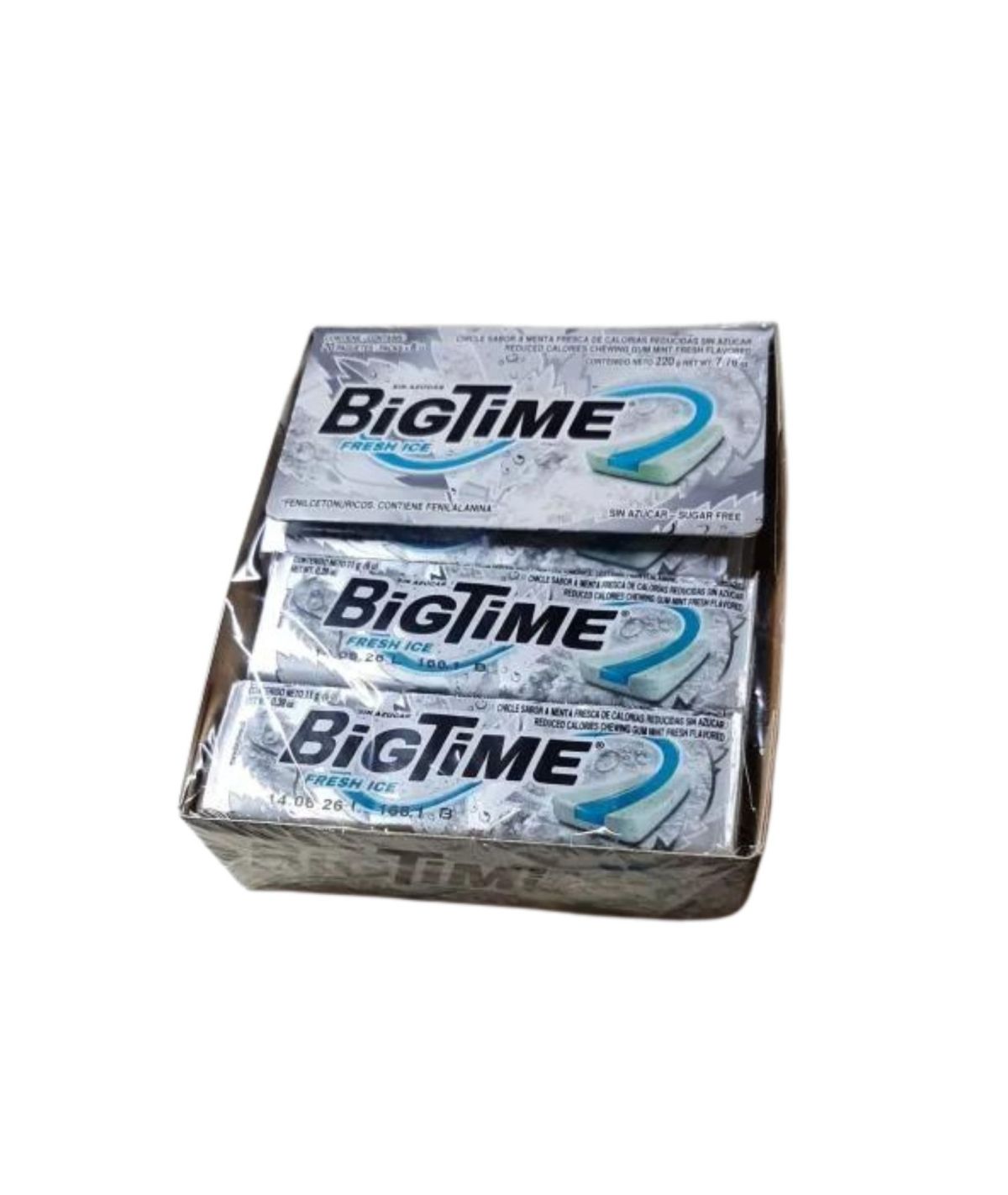 -El Chicle Bigtime Fresh Ice 11 g entrega una experiencia mentolada tipo "hielo" que refresca de inmediato la boca y el aliento. Su fórmula está pensada para quienes buscan un efecto frío duradero, ideal para después de fumar, comer o simplemente para mantener la boca fresca durante el día.