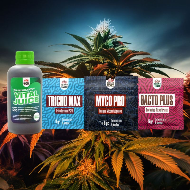 El Pack Completo Sustrato Técnico ofrece una combinación poderosa para cualquier cultivador de cannabis que busque mejorar el rendimiento y la salud de sus plantas. Con Vital Juice para un crecimiento saludable, Tricho Max para protección contra patógenos, Bacto Plus para aumentar la fertilidad del suelo y Myco Pro para optimizar el desarrollo radicular, este pack es indispensable para obtener plantas fuertes y productivas desde la raíz. Ideal para cultivadores que buscan resultados superiores en todas las etapas de crecimiento.