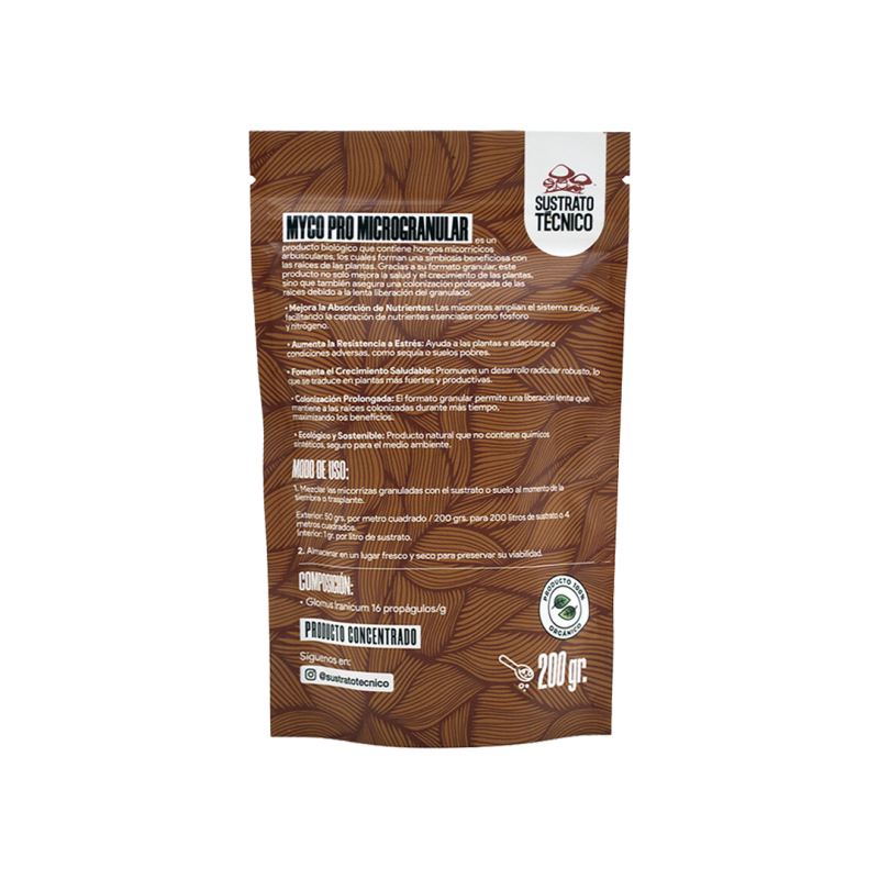 Este producto es ideal para mejorar la resistencia de las plantas frente a condiciones de estrés como sequía y suelos empobrecidos. Además, su acción sobre el desarrollo radicular fortalece la estructura de la planta, favoreciendo una mayor producción y vitalidad. 100% natural y libre de químicos sintéticos, Myco Pro Granular es una opción sostenible y ecológica para el cultivo profesional.