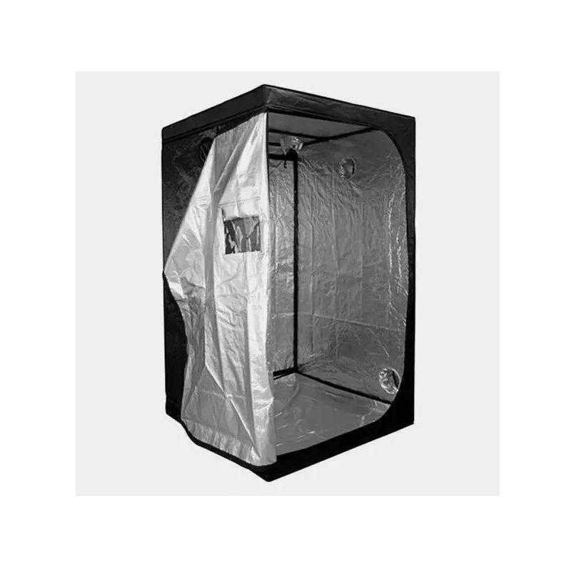 Fabricada con estructura metálica resistente y lona Mylar reflectante de alta calidad, garantiza una excelente distribución de la luz, optimizando el uso de ampolletas o paneles LED. Cuenta con múltiples entradas y salidas para ventilación, extracción, cableado y riego, además de cremalleras reforzadas y ventanas con malla para control ambiental.