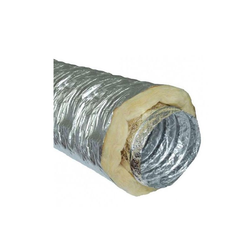 Su construcción de tres capas (aluminio flexible + aislante acústico + recubrimiento externo) le permite absorber vibraciones y reducir el ruido, lo que lo convierte en la mejor opción para quienes buscan discreción y comodidad en su cultivo indoor.