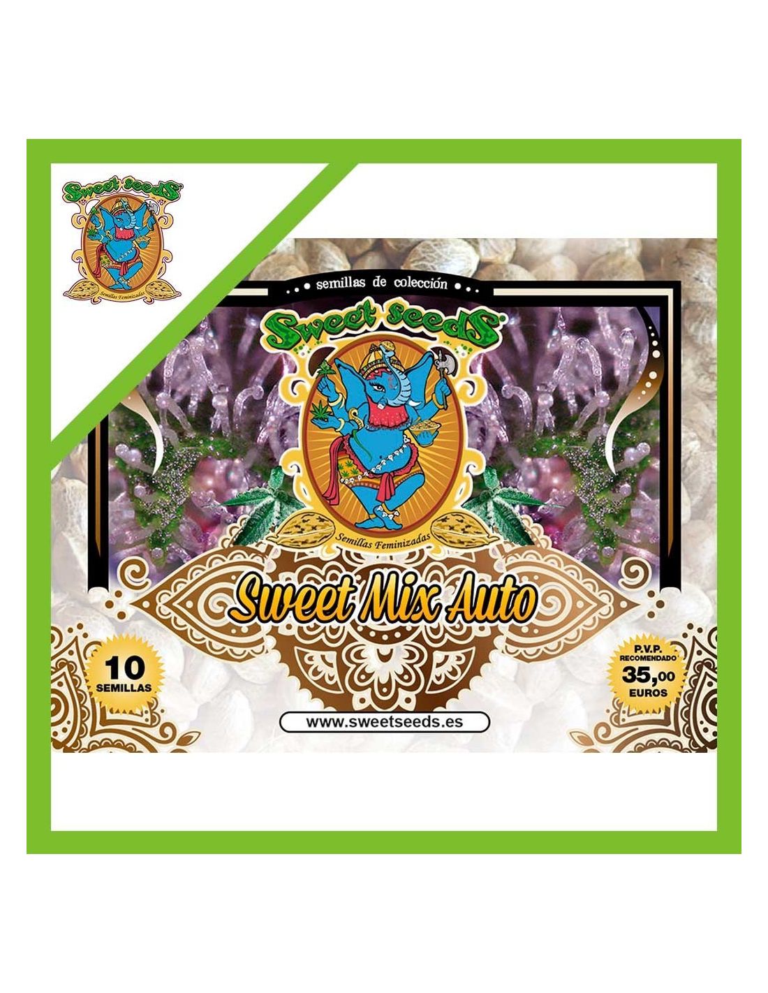 Presentado en un blíster atractivo y característico de Sweet Seeds, el mix viene con un tubo de vidrio que asegura la integridad y calidad de las 10 semillas. Aunque no están identificadas, estas semillas son una representación de algunas de las mejores variedades del mercado, prometiendo un cultivo de alta producción y características únicas.