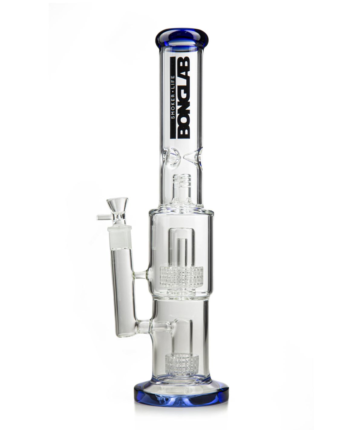 El Bonglab Double Shot Blue de 45 cm ha sido diseñado para brindar una experiencia de inhalación superior, combinando funcionalidad avanzada con un formato robusto y visualmente impactante. Construido en vidrio de borosilicato Pyrex de 7 mm de grosor, este bong garantiza resistencia estructural y tolerancia térmica óptima, ideal para sesiones prolongadas e intensas.