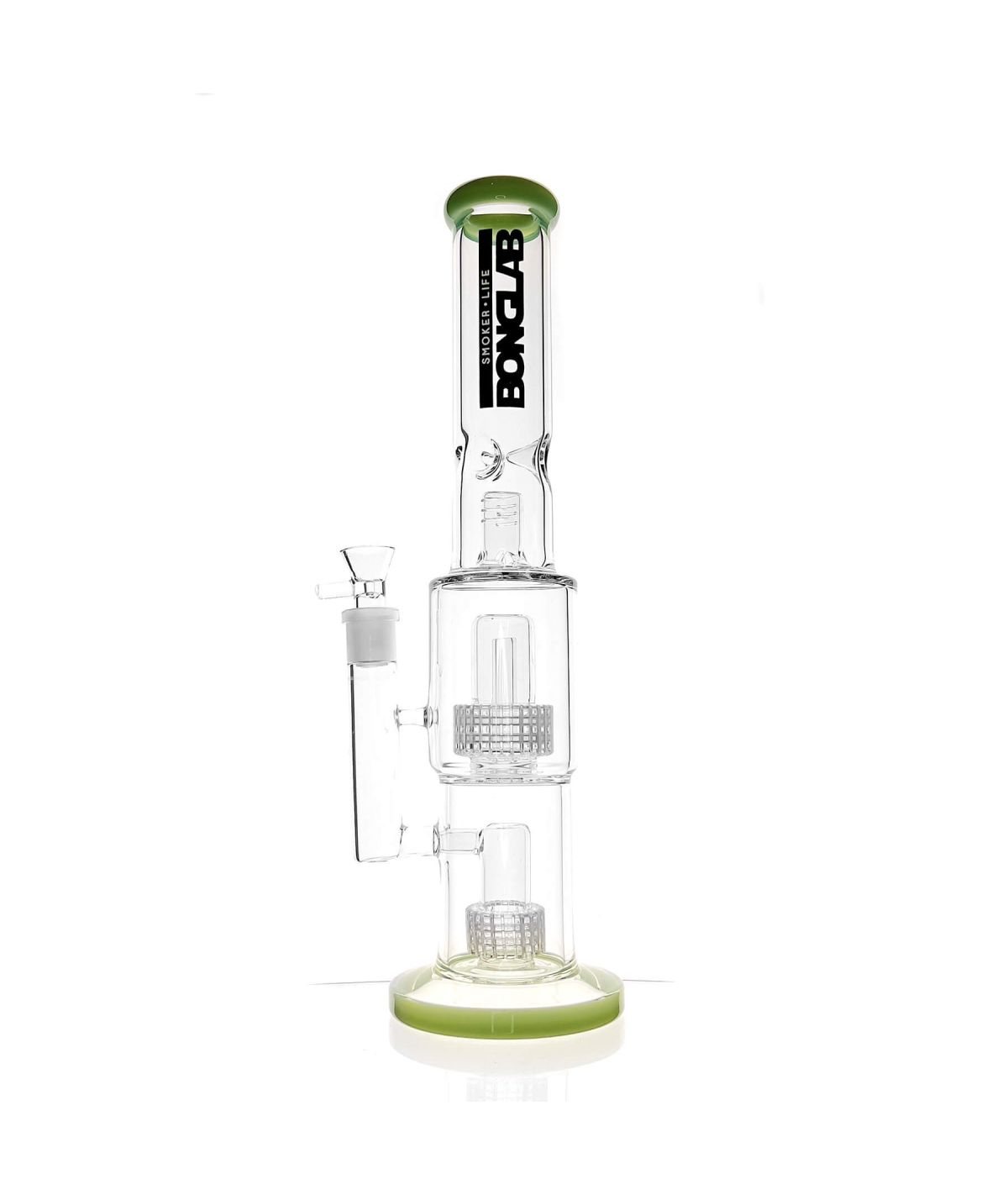 El Bonglab Double Shot Green es un bong de 45 cm fabricado en vidrio Pyrex grueso con doble percolador Matrix y sistema Splash Guard. Su diseño robusto ofrece una filtración superior y caladas suaves sin salpicaduras, ideal para quienes buscan rendimiento, limpieza y estilo en cada sesión.
