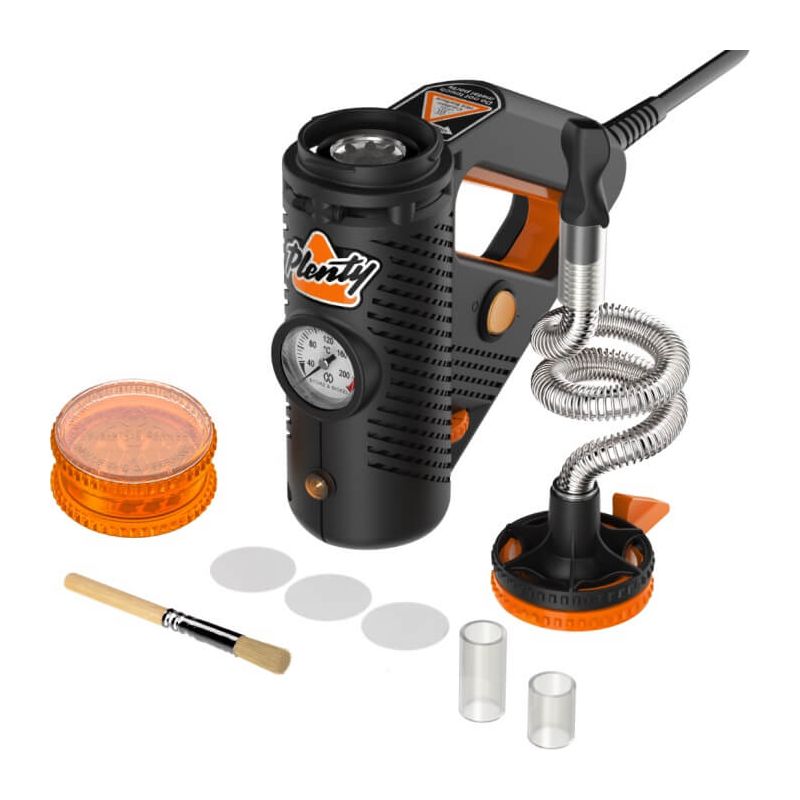 Diseñado con un enfoque en las hierbas secas, el Plenty viene acompañado de una gama de accesorios diseñados para enriquecer la experiencia del usuario, desde tubos de extensión hasta un molinillo de hierbas y un cepillo de limpieza, asegurando que los usuarios tengan todo lo necesario para iniciar su sesión de vaporización sin dilaciones.