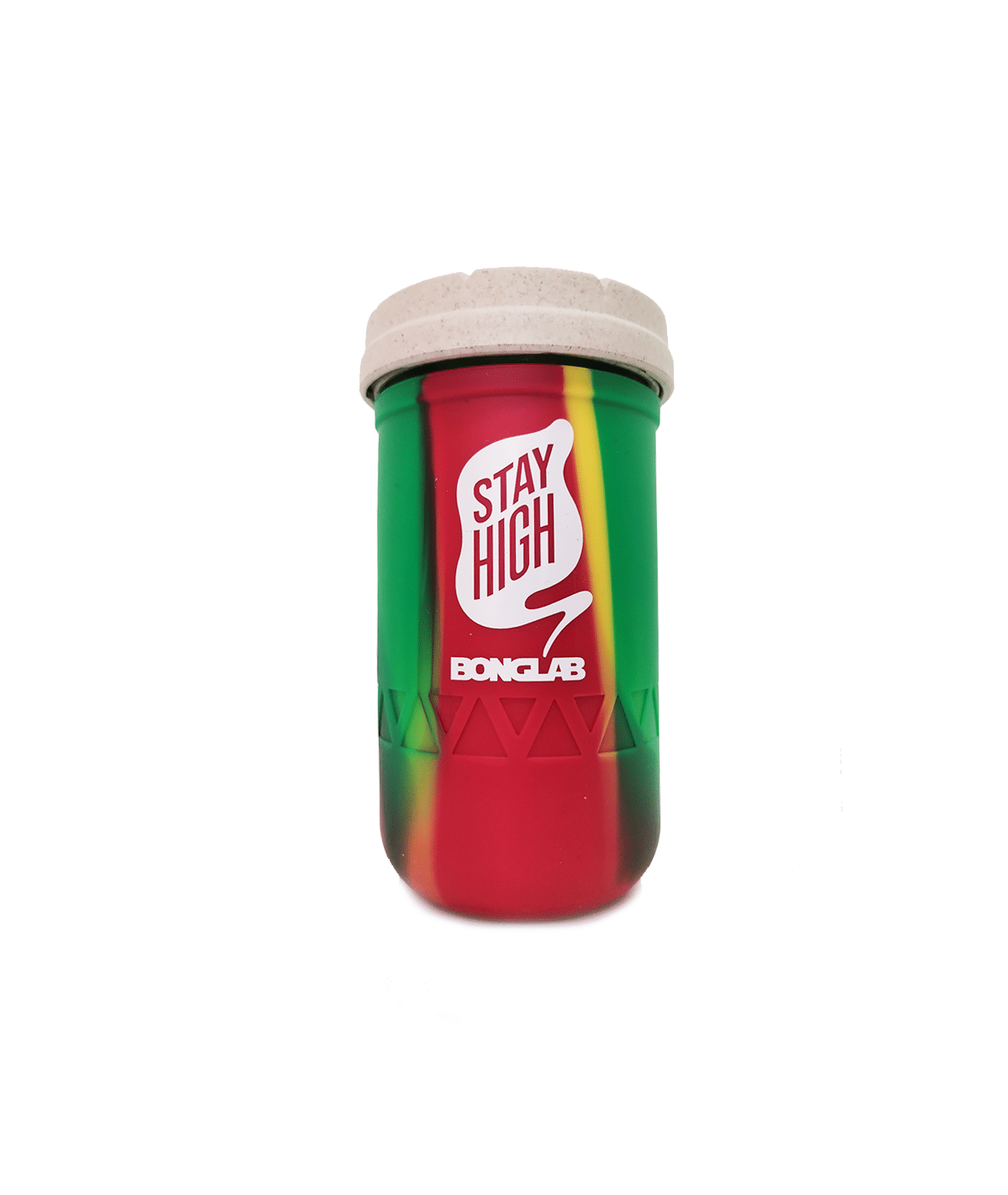 Con una capacidad de 12 onzas (~355 ml) , este envase es ideal para quienes necesitan mayor espacio de almacenamiento sin comprometer la seguridad del producto. Su diseño Rasta Tie Dye , con una vibrante combinación de colores y el estilo característico de Bonglab , lo hace único y llamativo, destacándose entre otros envases convencionales.