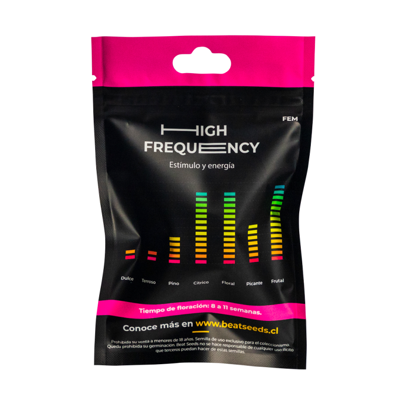 High Frequency Fem X4 de Beat Seeds es una genética Sativa feminizada con altos niveles de THC, perfecta para quienes buscan un efecto eufórico y energizante. Su aroma combina notas florales, cítricas y frutales, brindando una experiencia fresca y estimulante. Lista para cosecha en 8 a 11 semanas, esta cepa se cultiva con facilidad y destaca por su compromiso ecológico, con un empaque reutilizable y recipiente de silicona de grado alimenticio. ¡La mezcla perfecta entre energía, calidad y buena música!