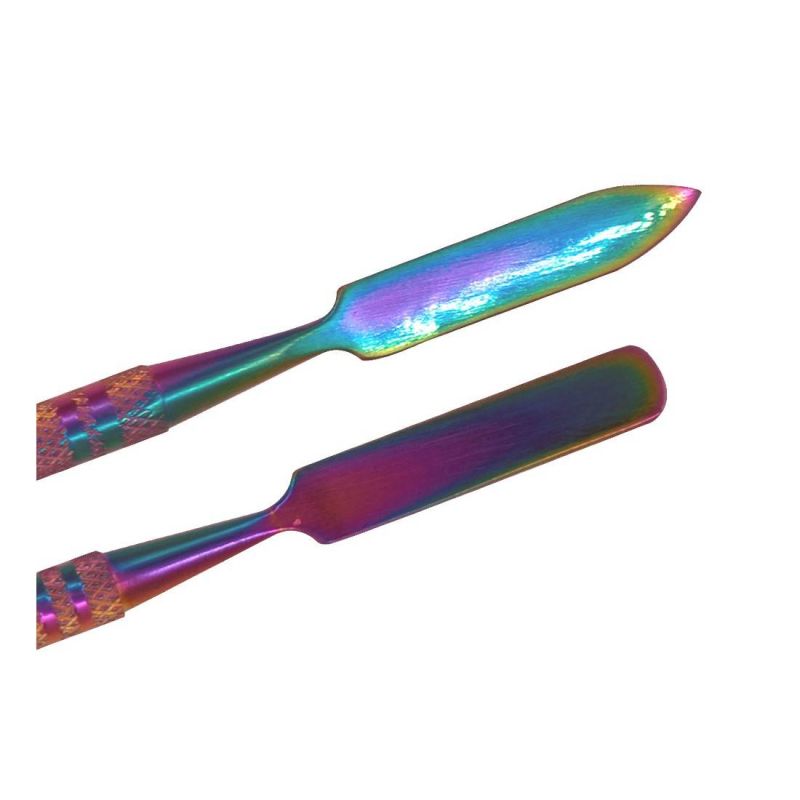 La Dual Dabbers Classic de Bonglab es la herramienta imprescindible para manipular extracciones con precisión y limpieza. Su diseño doble punta te da versatilidad: una espátula/“cuchara” para cargar y otra punta tipo pala/lanza para cortar o recoger con exactitud. Fabricada en titanio anodizado (acabado “rainbow”), resiste altas temperaturas, no se deforma y es muy fácil de limpiar. El mango texturizado mejora el agarre incluso con guantes.