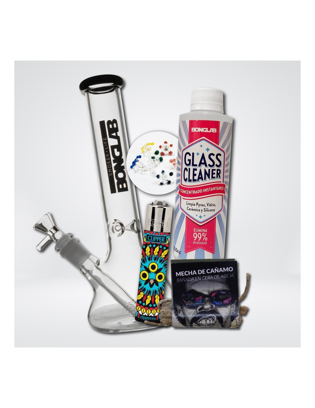 El Pack KS10 de Bonglab es el paquete perfecto para los amantes de los bongs. Este paquete incluye un bong Bonglab KS10 de alta calidad, diseñado para ofrecer una experiencia de fumado suave y agradable. Además, el paquete incluye un clipper, una mecha, un limpiador de vidrio Bonglab de 250ml y 3 rejillas Pyrex para garantizar que su bong esté siempre limpio y listo para usar.