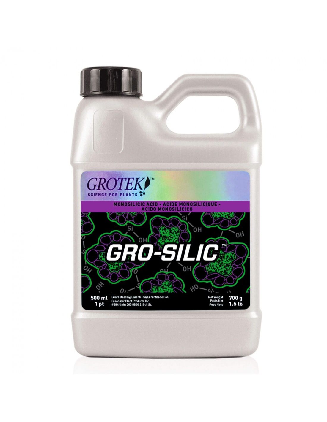Mejora la salud y resistencia de tus plantas con el fertilizante Gro-Silic 250ml-Grotek. Este suplemento líquido de silicio concentrado fortalece las paredes celulares, aumentando la resistencia al estrés abiótico. ¡Potencia tus cultivos y obtén resultados superiores con Grotek! ¡Compra ahora y mejora la salud de tus plantas!.