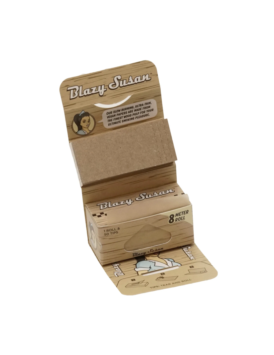 Papelillo Unbleached Roll 8 Metros de Blazy Susan: elige tu tamaño ideal, con 8 metros de papel y puntas de filtro. Perfecto para los creativos del arte fumable. ¡Adapta y crea a tu ritmo!