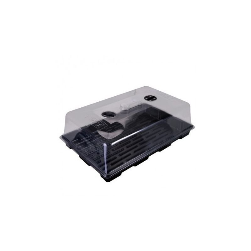 La Propagadora con Cúpula 54x28x25cm ofrece un ambiente controlado ideal para la germinación y propagación, reteniendo la humedad y facilitando el crecimiento de las plantas.