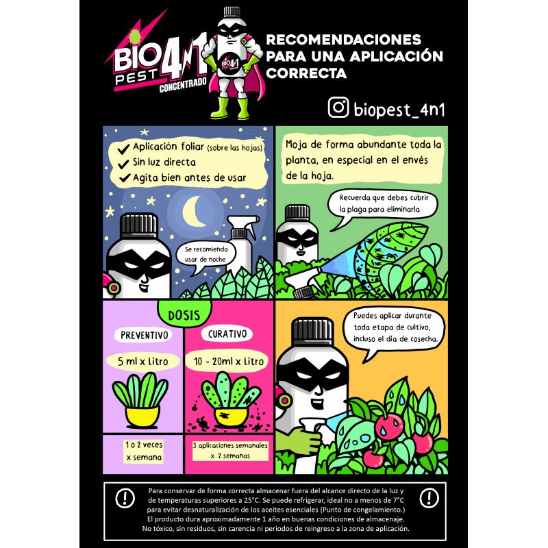 Con la CARGA BIOPEST 4N1 de 1 litro, los usuarios cuentan con una solución sustentable y eficiente para controlar plagas de manera ecológica. Su efectividad comprobada contra moscas blancas, trips, áfidos y ácaros garantiza cultivos sanos y productivos sin comprometer la seguridad del ambiente.