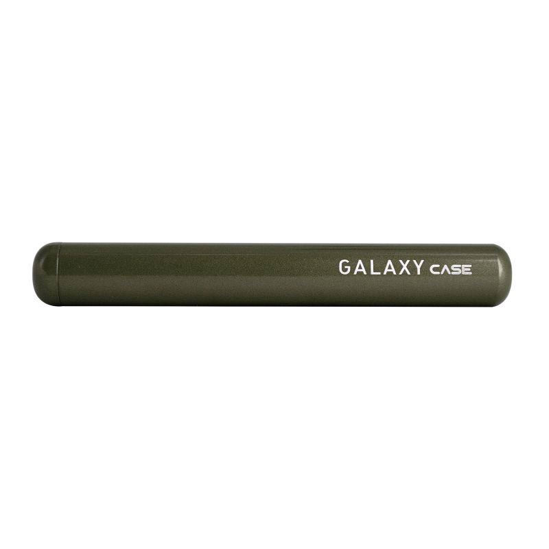 Galaxy Case Ceramic Green es un estuche hermético y compacto para transportar caños o pitos sin filtraciones de olor. Con cuerpo de aluminio recubierto de cerámica verde, mide 11 x 1,5 cm y cuenta con cierre a rosca con sellado doble. Funcional, seguro y con un diseño natural y profesional.