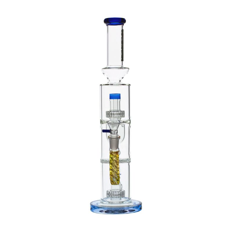 Sumérgete en una experiencia de fumada única con el bong de vidrio The Sheikh Blue de Bonglab. Su impresionante altura de 42 cm y estructura robusta lo convierten en la elección perfecta para quienes disfrutan de caladas potentes y llenas de cuerpo. Este bong resistente está fabricado con vidrio grueso de 5 mm, asegurando durabilidad y firmeza en cada uso.