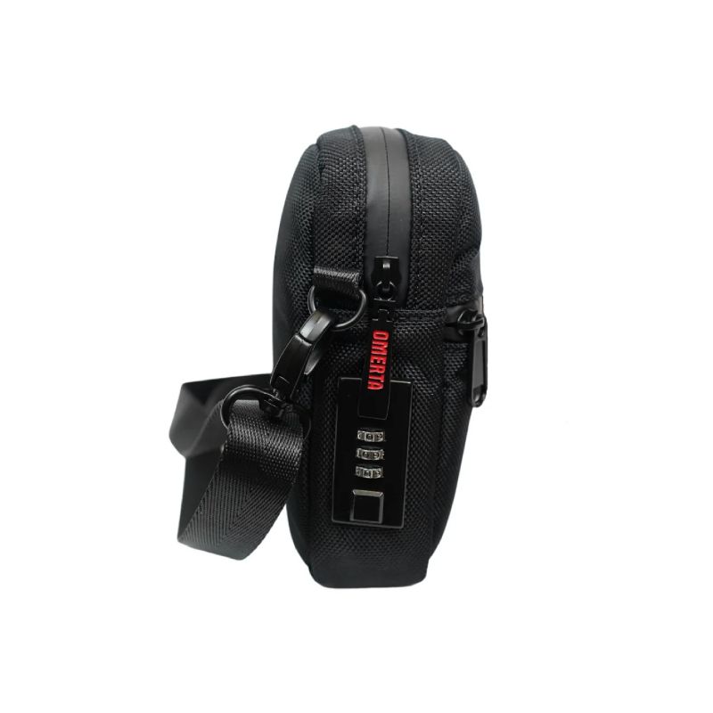 Bolso compacto a prueba de olores con filtro de carbono, tres compartimentos y correa ajustable, ideal para transportar esenciales con total discreción.