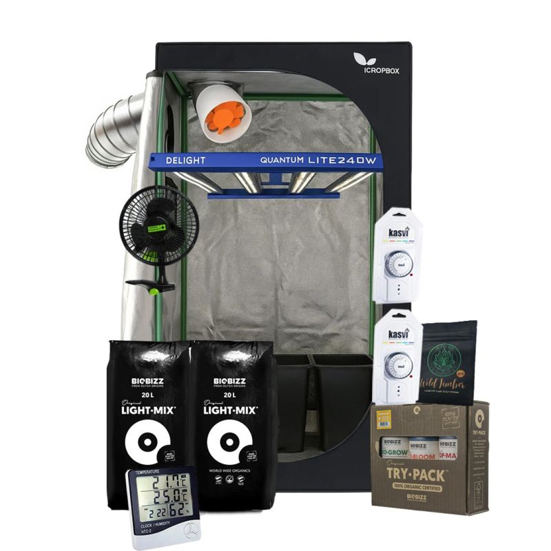 ¿Quieres llevar tu cultivo indoor al siguiente nivel? El Kit Quantum Lite Delight 80 - 240W está diseñado para quienes buscan un cultivo completo, eficiente y de alto rendimiento. Equipado con iluminación LED profesional, ventilación, fertilización y todo lo necesario para lograr plantas sanas desde el primer día.