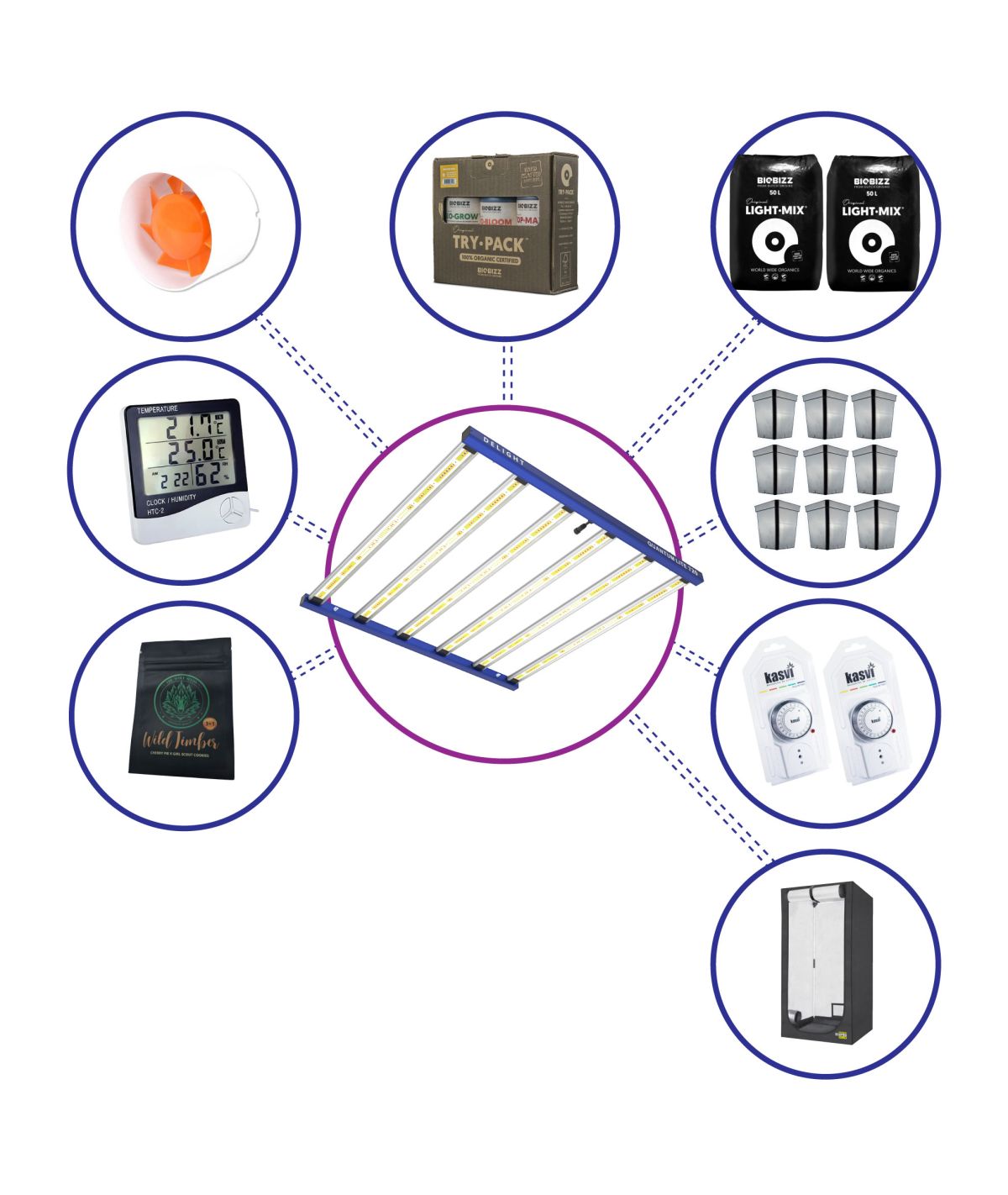 Ideal para quienes ya cuentan con ventiladores o accesorios menores y desean un sistema eficiente y potente para su cultivo.