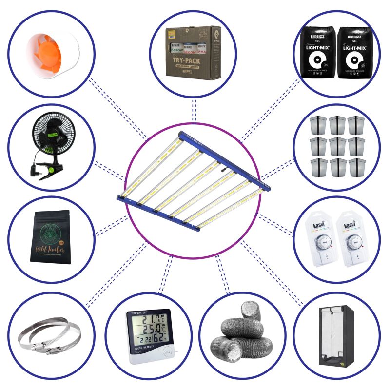 Este pack está equipado con el Panel LED Quantum Lite QL720 – 720W, ideal para cultivos de gran densidad y exigencia lumínica. La carpa Garden HighPro ECOPRO de 120x120x200 cm ofrece el espacio perfecto para alojar hasta 9 plantas cómodamente. Además, el kit incluye sustrato Biobizz Light Mix, fertilización orgánica Try Pack, extractor, ventilador, ducto, timers, medidor ambiental y una semilla feminizada para comenzar sin comprar nada más.