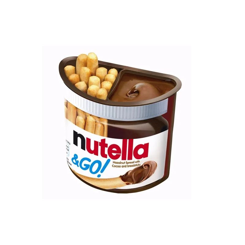 Nutella & Go es el formato más práctico y delicioso de la clásica crema de avellanas con cacao de Ferrero. Este snack listo para disfrutar combina una porción de Nutella suave y cremosa con crujientes palitos de pan, perfectos para sumergir y saborear en cualquier lugar.
