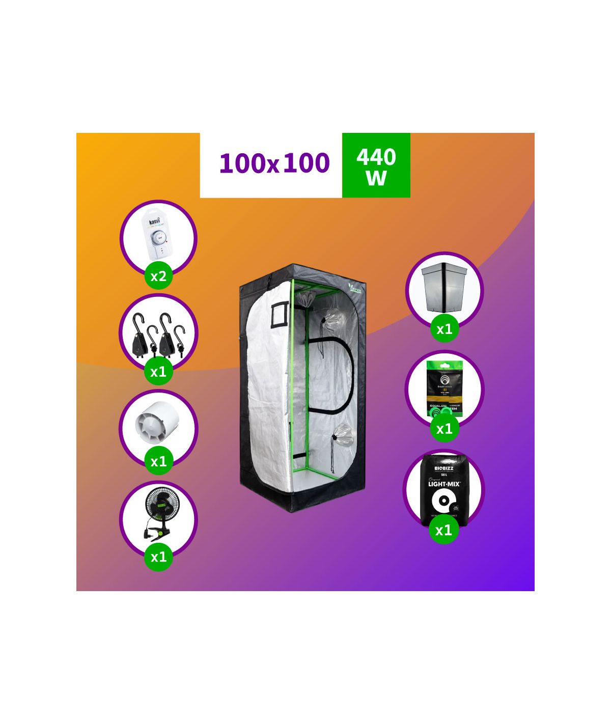 Ya que es un pack con todo lo que necesitas para comenzar la aventura del cultivo de interior con la mejor tecnología LED de Delight Chile; Además cuenta con una carpa de 100x100 para grandes producciones y todos los accesorios indispensables.
