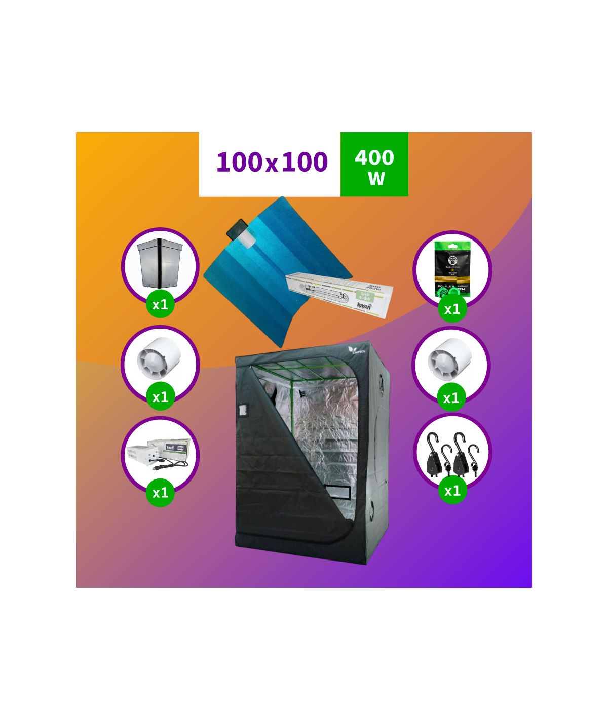 KIT INDOOR SODIO KASVI INICIAL 100X100X200 - 400W