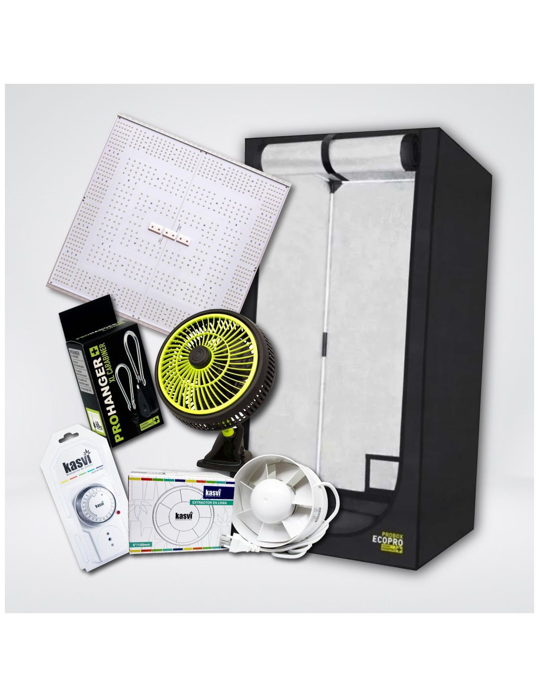 -Con la fresca y vibrante elegancia del cultivo en interiores, el "KIT QUANTUM BASIC 3 100X100X200" redefine lo que significa el cultivo de cannabis de alta calidad. ¿Quieres llevar tu jardín interior al siguiente nivel? Permítenos presentarte una combinación de productos seleccionados especialmente para aquellos que desean más que lo básico. El corazón del kit es la CARPA Probox Ecopro 100X100X200 de la marca Garden Highpro, una estancia segura y regulada para tus plantas. A esto le añadimos el innovador panel led QUANTUM SQUARE C320 de la marca Delight, una luminaria que simula el sol dentro de tu espacio. Pero hay más: el timer análogo Kasvi, el extractor 5"/125mm de la marca Kasvi, un ventilador clip fan oscilante de 20W de Garden Highpro, y la robusta polea de 68kg de Garden Highpro completan este paquete, brindándote una auténtica sinfonía de crecimiento. Haz el primer paso hacia la maestría en cultivo. La oportunidad te espera, y el "KIT QUANTUM BASIC 3 100X100X200" es tu pasaporte hacia una aventura de jardinería que te enriquecerá y te inspirará.
