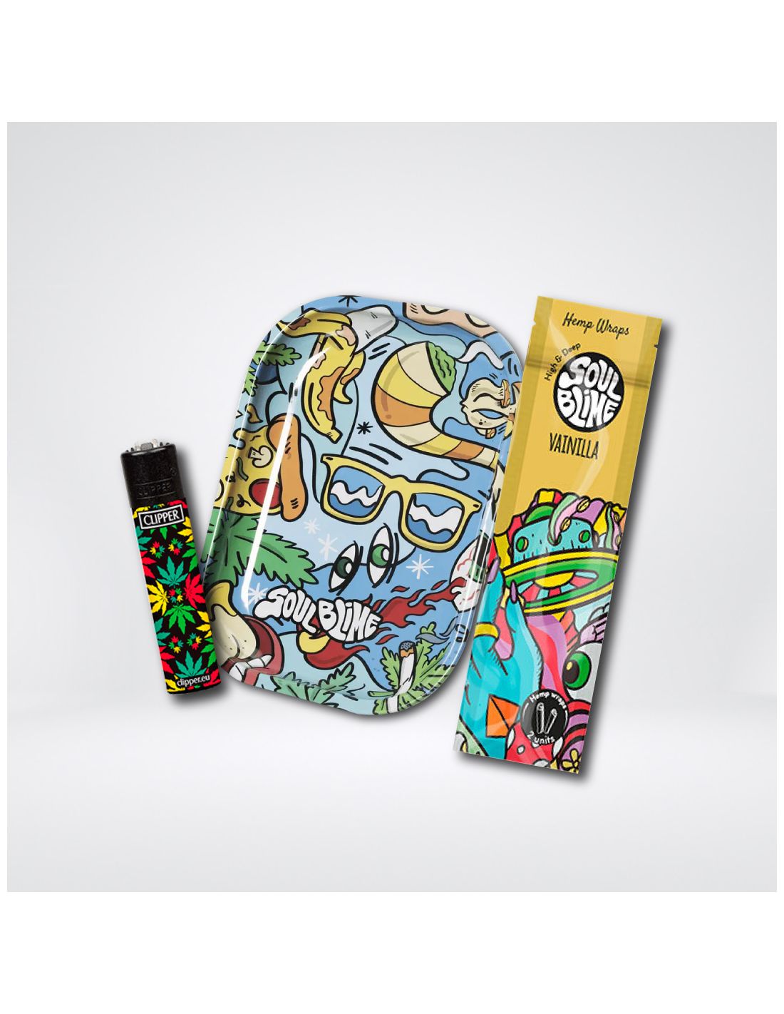 Descubre el Pack Clipper SoulBlime Dulce, el kit esencial para el aficionado al cannabis que valora la excelencia y la ecología. Fusiona la durabilidad y el estilo de las bandejas metálicas para enrolar de Soulblime con los encendedores Clipper y los deliciosos Hemp Blunt Wraps de Soulblime, que prometen pureza y placer con cada inhalación. Este pack representa el equilibrio perfecto entre funcionalidad y diseño, ideal para aquellos que buscan elevar su experiencia de fumado con productos premium, orgánicos y llenos de sabor.