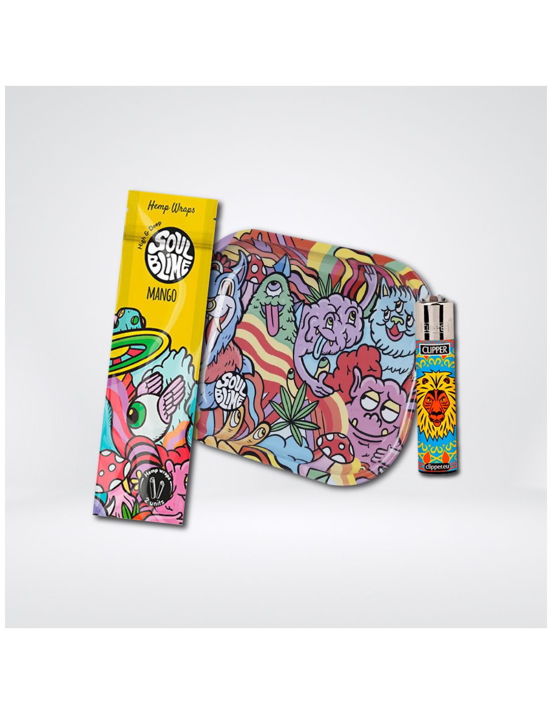 Descubre el Pack Clipper SoulBlime Tropical, el kit esencial para el aficionado al cannabis que valora la excelencia y la ecología. Fusiona la durabilidad y el estilo de las bandejas metálicas para enrolar de Soulblime con los encendedores Clipper y los deliciosos Hemp Blunt Wraps de Soulblime, que prometen pureza y placer con cada inhalación. Este pack representa el equilibrio perfecto entre funcionalidad y diseño, asegurando sesiones memorables, ideal para aquellos que buscan elevar su experiencia de fumado con productos premium, orgánicos y llenos de sabor.