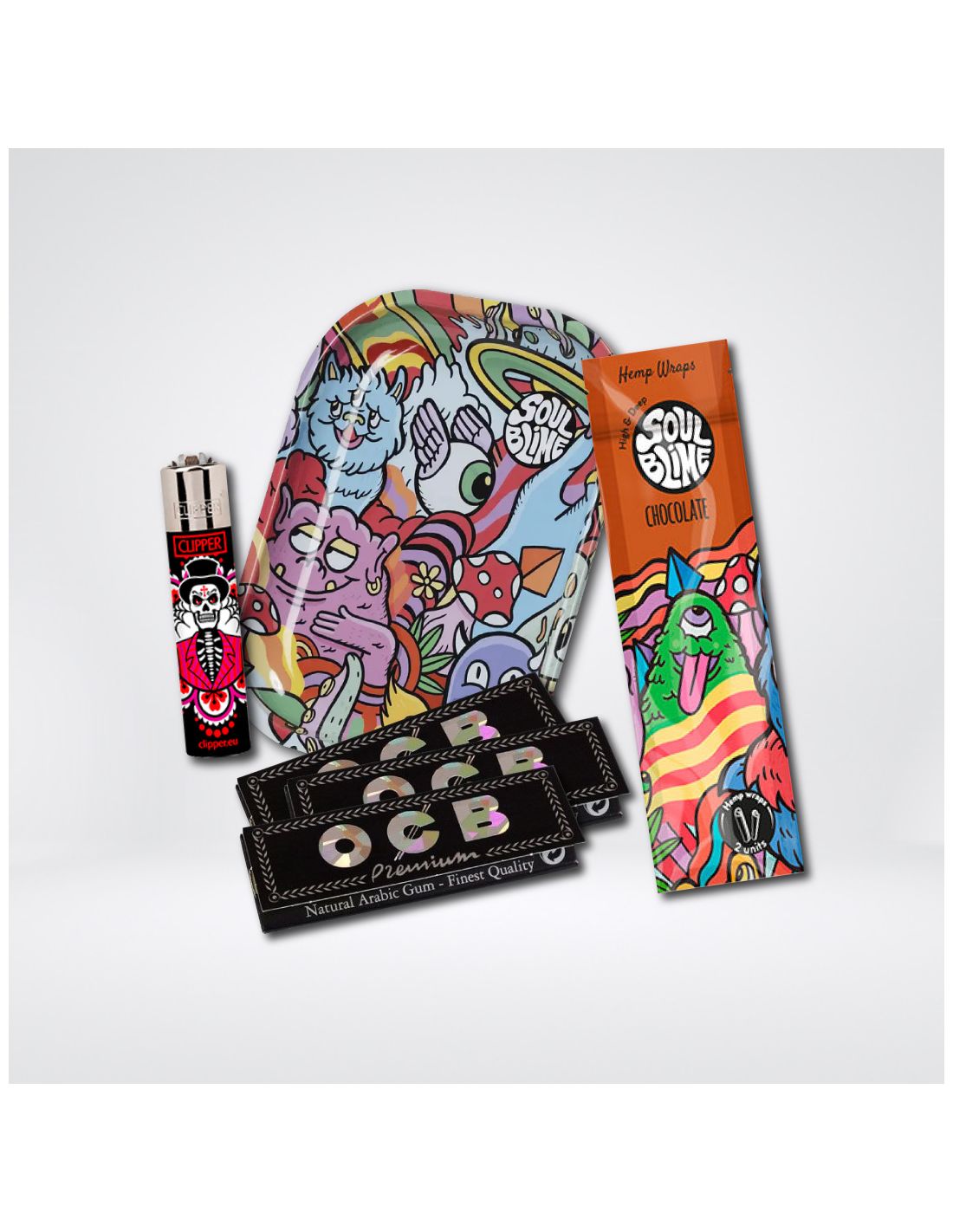 Eleva tu ritual de fumado con el Pack Clipper Soulblime Dulce 2, el kit definitivo para connaisseurs del cannabis que fusiona arte, sabor y conciencia ambiental. Incluye papelillos Premium OCB, una bandeja metálica Soulblime, un encendedor Clipper, todo complementado con Hemp Blunt Wraps orgánicos de Chocolate, perfectos para un enrolado puro y natural. Este pack no solo satisface tus sentidos sino que también apoya un estilo de vida sostenible.