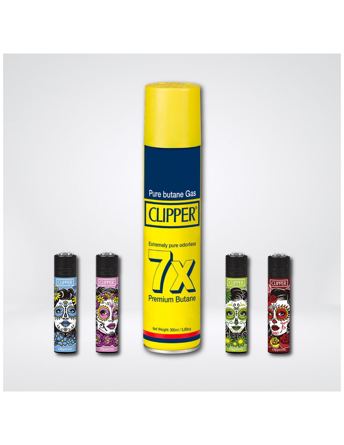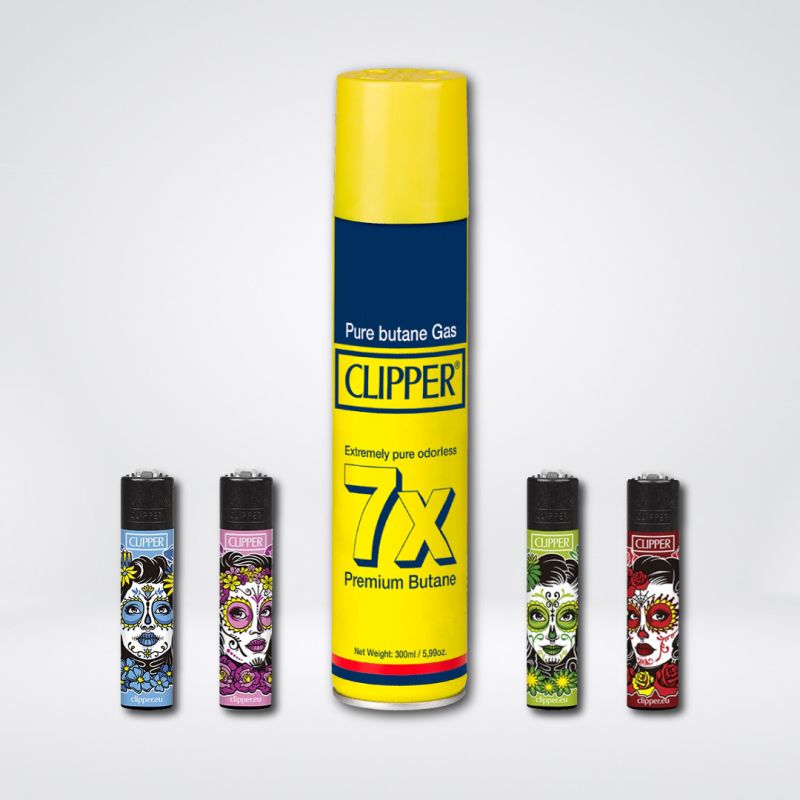 Maximiza la eficiencia de tu encendido con el Pack Colección 4 Clipper + Butano, donde la elegancia se une a la funcionalidad. Cuatro encendedores recargables Clipper con diseño de Catrinas y el gas butano 7x de Clipper ofrecen una llama pura y constante, perfecta para consumidores de cannabis que valoran la calidad y la durabilidad. Este pack no solo es práctico y confiable, sino que también añade un toque distintivo a tu colección de accesorios para fumadores.