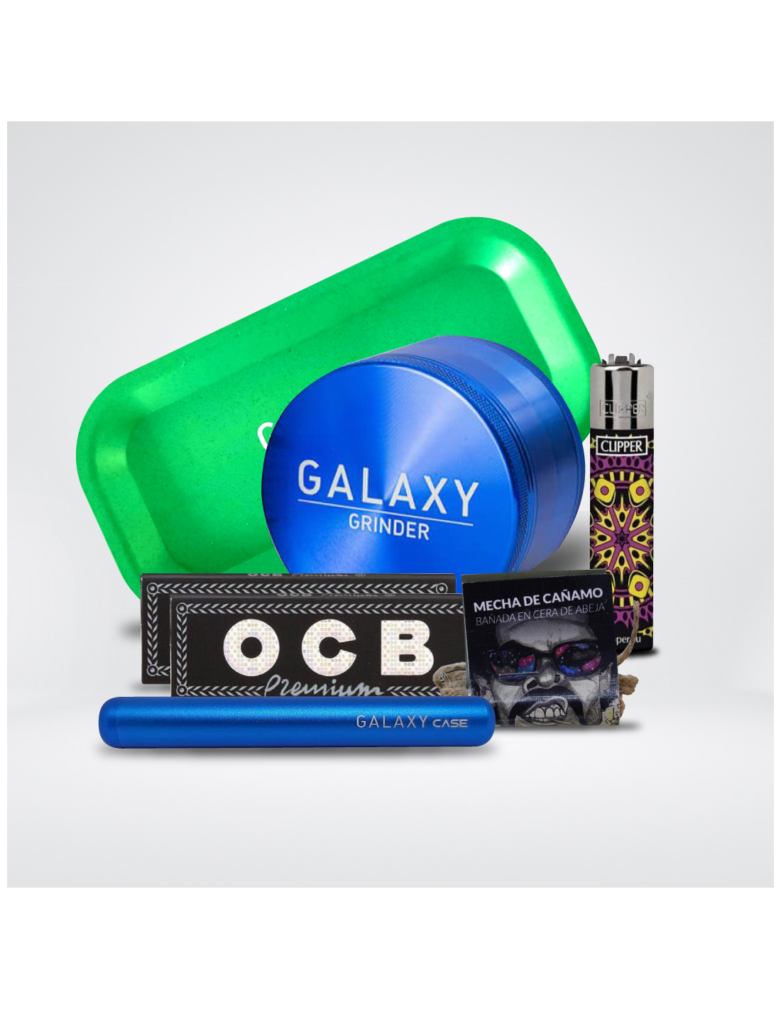 Descubre la combinación perfecta de estilo, funcionalidad y calidad con nuestro pack de consumo de cannabis. Desde el elegante Galaxy Grinder, el Galaxy Case para guardar tus caños hasta la práctica bandeja de rodar y los accesorios premium como el papel OCB y el encendedor Clipper, cada pieza ha sido seleccionada pensando en el consumidor exigente. Completa tu experiencia con la mecha de cáñamo Astro, y sumérgete en un mundo de sofisticación y placer natural.