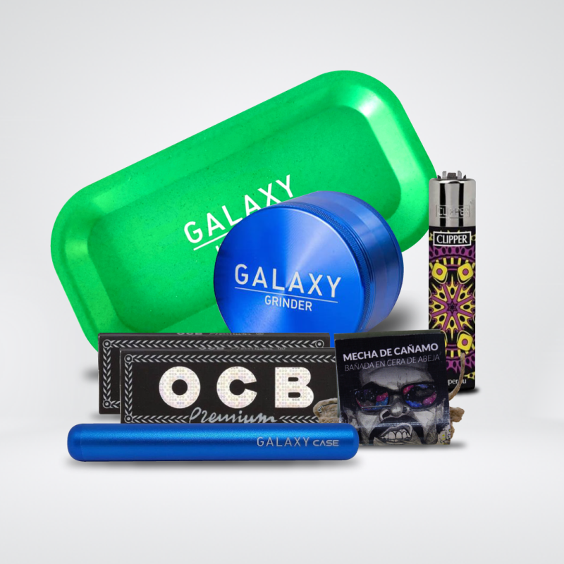 Este pack para consumo de cannabis incluye todo lo que necesitas para disfrutar de una buena sesión. El Galaxy Grinder de 38mm en color negro te permitirá triturar tus cogollos de forma eficiente y sin esfuerzo. La bandeja de rodar Galaxy Grinder Hemp en color blanco es perfecta para mantener tus utensilios organizados y limpios mientras preparas tus porros. Además, el pack incluye dos libritos de papel de liar OCB Negro Premium, de alta calidad y resistencia. Para encender tus porros, el encendedor Clipper de variedades es una excelente opción, con su llama ajustable y su diseño divertido y original. Para completar el pack, se incluye una mecha de cáñamo Astro de 1 metro, perfecta para los amantes de los porros naturales y sin aditivos. Y para transportar todo de forma segura y discreta, el estuche Galaxy Grinder en color negro es la opción ideal. ¡Disfruta de una sesión perfecta con este completo pack!