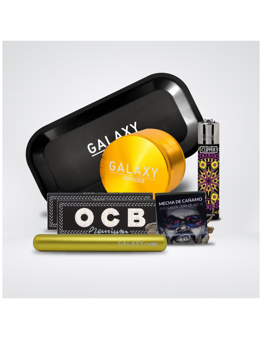 Este pack para consumo de cannabis incluye todo lo que necesitas para disfrutar de una buena sesión. El Galaxy Grinder de 38mm en color negro te permitirá triturar tus cogollos de forma eficiente y sin esfuerzo. La bandeja de rodar Galaxy Grinder Hemp en color blanco es perfecta para mantener tus utensilios organizados y limpios mientras preparas tus porros. Además, el pack incluye dos libritos de papel de liar OCB Negro Premium, de alta calidad y resistencia. Para encender tus porros, el encendedor Clipper de variedades es una excelente opción, con su llama ajustable y su diseño divertido y original. Para completar el pack, se incluye una mecha de cáñamo Astro de 1 metro, perfecta para los amantes de los porros naturales y sin aditivos. Y para transportar todo de forma segura y discreta, el estuche Galaxy Grinder en color negro es la opción ideal. ¡Disfruta de una sesión perfecta con este completo pack!