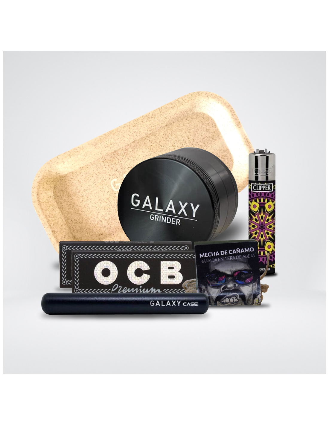 Descubre la combinación perfecta de estilo, funcionalidad y calidad con nuestro pack de consumo de cannabis. Desde el elegante Galaxy Grinder, el Galaxy Case para guardar tus caños hasta la práctica bandeja de rodar y los accesorios premium como el papel OCB y el encendedor Clipper, cada pieza ha sido seleccionada pensando en el consumidor exigente. Completa tu experiencia con la mecha de cáñamo Astro, y sumérgete en un mundo de sofisticación y placer natural.