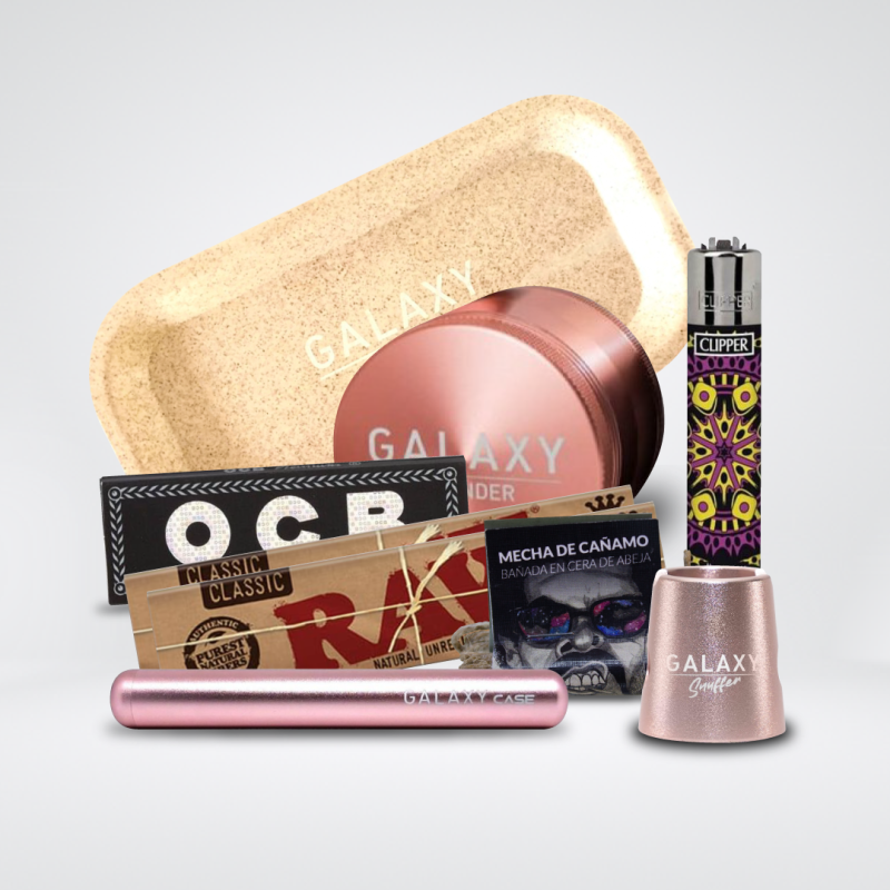 Eleva tu experiencia de cannabis con nuestro pack completo, ideal para los verdaderos aficionados. Consta del eficiente Galaxy Grinder de 55 mm, bandeja de enrolar Galaxy, Galaxy Case y Snuffer, encendedor Clipper multifuncional, papelillos RAW y OCB para fumadas puras, mecha de cáñamo Astro para sesiones continuas. Un kit esencial para disfrutar con estilo, comodidad y calidad.