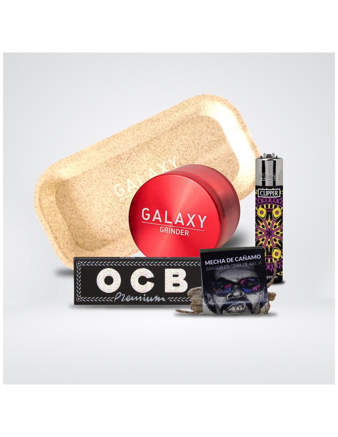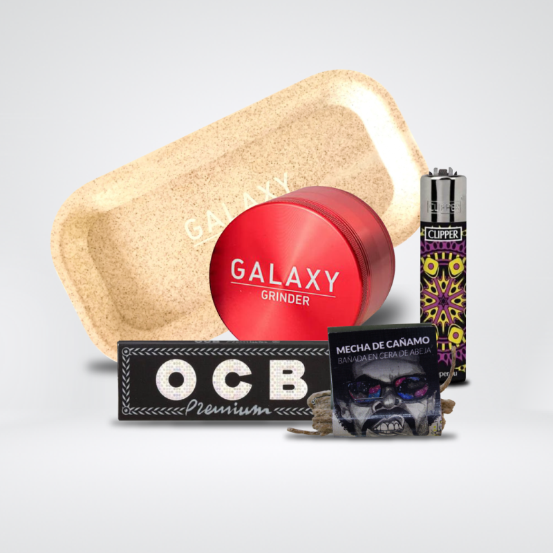 Eleva tu ritual de cannabis con este exclusivo pack, diseñado meticulosamente para los aficionados que valoran la calidad y la comodidad. Este conjunto integral transforma cada sesión en una experiencia sofisticada y placentera, destacando por su funcionalidad y estilo. El corazón del pack es el Galaxy Grinder de 38mm, una obra maestra en diferentes colores que garantiza una molida perfecta de tus cogollos, preservando su frescura y potenciando su aroma. Acompañándolo, la bandeja de enrolado de hemp Galaxy que no solo es práctica sino también un accesorio distintivo que refleja tu pasión por el universo del cannabis.